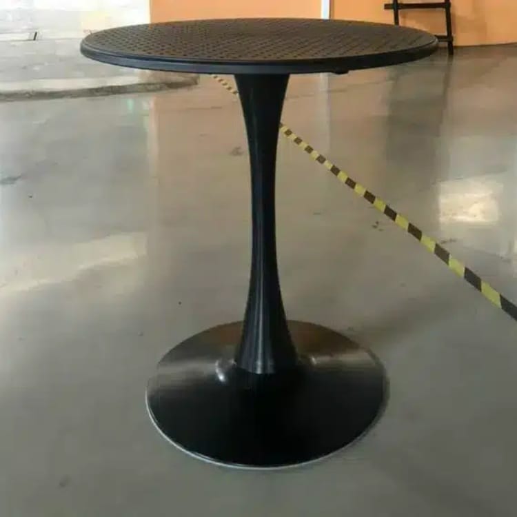 Điểm nổi bật của sản phẩm này nằm ở kết cấu hoàn toàn bằng sắt chắc chắn. Mặt bàn và chân bàn được gia công từ sắt dày, phủ sơn tĩnh điện cao cấp giúp chống gỉ sét, chống trầy xước và chịu được tác động của thời tiết, đặc biệt phù hợp cho quán cà phê sân vườn hoặc ban công. Chân bàn thiết kế trụ tròn và đế tròn vững chắc, giúp hạn chế rung lắc khi sử dụng. Thiết kế tối giản nhưng hiện đại giúp mẫu bàn này dễ dàng kết hợp với nhiều loại ghế như ghế nhựa, ghế sắt, ghế bọc nệm, tạo nên tổng thể hài hòa và chuyên nghiệp.