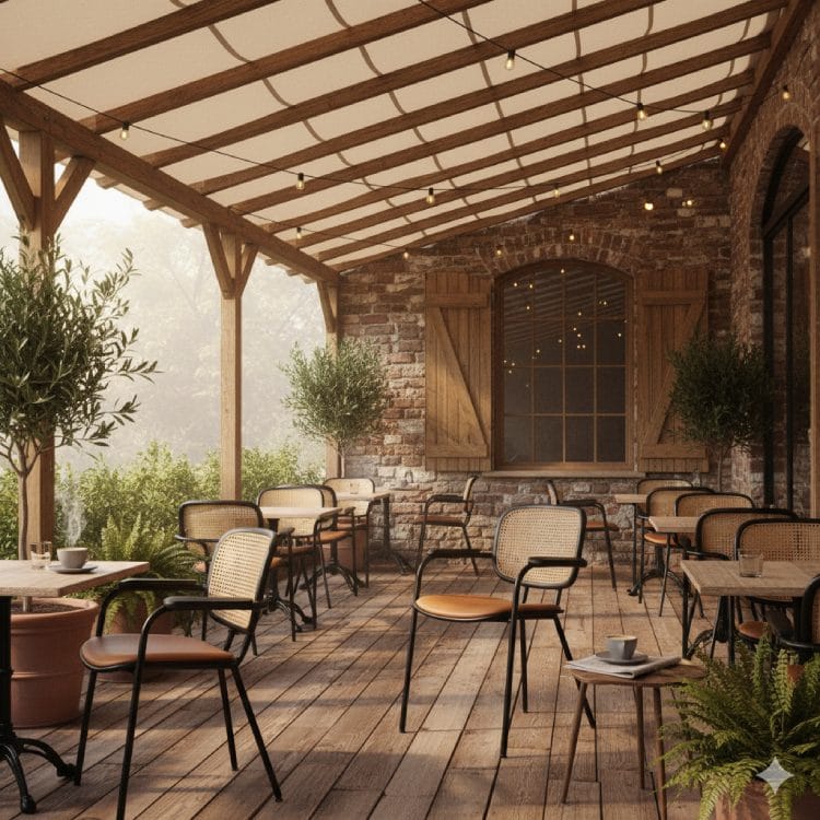 Ghế có tay vịn ghế cà phê khung sắt bọc nệm