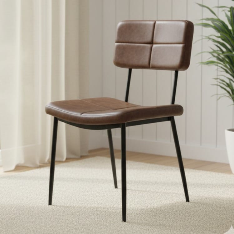 Chất liệu da bọc mềm mại, dễ vệ sinh và chống thấm nước, độ bền cao và lâu dài. Mẫu ghế nổi bật với kiểu dáng tối giản, khung chân sắt sơn tĩnh điện màu đen, mang đến sự chắc chắn, bền bỉ và an toàn khi sử dụng. Chân ghế thanh mảnh nhưng có khả năng chịu lực tốt, giúp ghế vững vàng trên mọi bề mặt. Phần đệm ngồi và tựa lưng bọc da cao cấp mang tông màu ấm áp, tạo cảm giác sang trọng, dễ phối hợp với nhiều phong cách nội thất khác nhau.