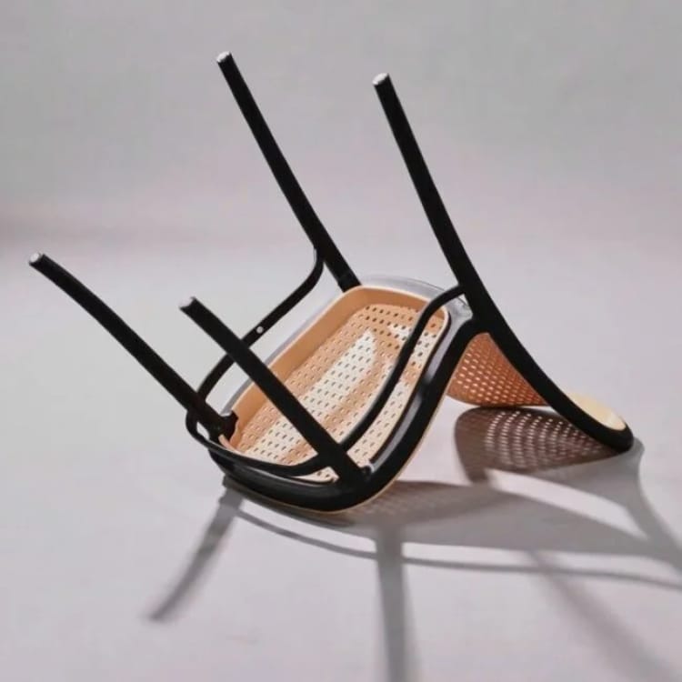 Ghế nhựa giả mây ngoài trời này nổi bật với thiết kế pha trộn giữa hiện đại và cổ điển. Phần tựa lưng và mặt ngồi được làm kiểu lưới đan giả mây tinh tế, tạo cảm giác thoáng khí và dễ chịu khi sử dụng. Khung ghế bằng nhựa PP cao cấp màu trắng mang lại vẻ thanh lịch, đồng thời giúp ghế nhẹ, dễ di chuyển và chống thấm nước tốt. Sự kết hợp hài hòa giữa tông trắng và màu nâu nhạt của phần đan tạo nên tổng thể sang trọng, phù hợp cho không gian quán cafe, nhà hàng hay phòng ăn gia đình hiện đại.