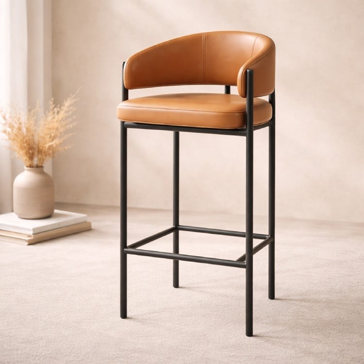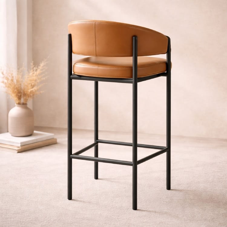 Khung ghế được làm từ sắt sơn tĩnh điện màu đen, có khả năng chịu lực tốt, chống gỉ sét và đảm bảo độ bền lâu dài trong quá trình sử dụng. Thiết kế chân cao đúng chuẩn ghế bar giúp người ngồi có tư thế thoải mái khi sử dụng tại quầy bar, bàn cao hoặc đảo bếp. Phần thanh giằng ngang dưới chân vừa tăng độ vững chắc vừa tạo điểm tựa để chân, giúp ngồi lâu không bị mỏi.