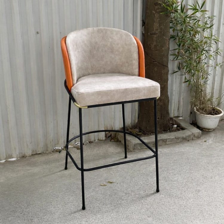 Phần khung của sản phẩm được gia công từ sắt sơn tĩnh điện, đảm bảo độ cứng vững, chịu lực tốt và hạn chế gỉ sét trong quá trình sử dụng lâu dài. Cấu trúc chân cao đi kèm thanh gác chân tiện lợi giúp người ngồi giữ tư thế thoải mái, đặc biệt phù hợp với bàn bar, quầy pha chế hoặc bàn đảo bếp gia đình. Điểm thu hút của mẫu ghế nằm ở phần mặt ngồi và tựa lưng bọc nệm êm ái. Thiết kế bo cong nhẹ theo đường lưng tạo cảm giác dễ chịu khi ngồi lâu.