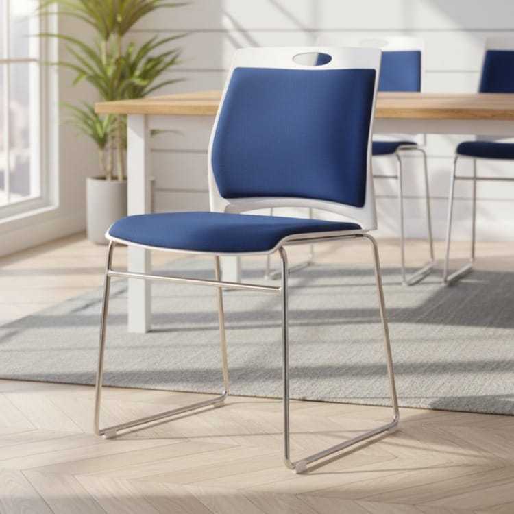 Ghế thư viện MRY-01 sở hữu phong cách thiết kế đơn giản, không tay vịn, giúp tối ưu hóa diện tích sử dụng trong các không gian cần sự linh hoạt. Khung ghế làm bằng nhựa màu trắng, kết hợp với chân sắt mạ chrome sáng bóng, không chỉ tạo nên vẻ ngoài thanh lịch mà còn tăng độ vững chắc và khả năng chịu lực. Đặc biệt, tính năng xếp chồng giúp việc sắp xếp, di chuyển và lưu trữ ghế trở nên dễ dàng hơn bao giờ hết, rất phù hợp cho những nơi thường xuyên thay đổi bố cục không gian.