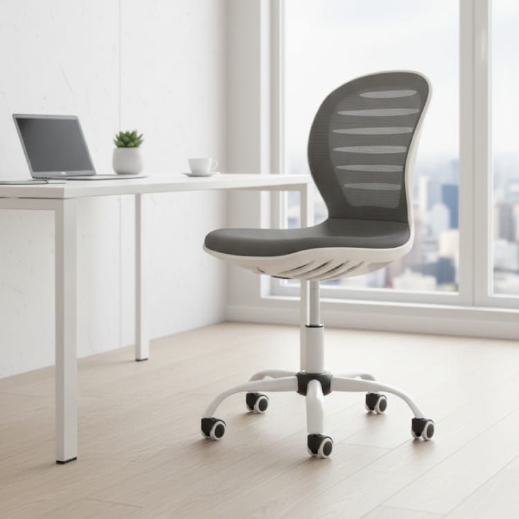 Ghế tựa xoay sở hữu thiết kế tối giản, hiện đại với tông màu trung tính, dễ dàng kết hợp nhiều không gian khác nhau. Phần lưng ghế sử dụng chất liệu lưới cao cấp, giúp thoáng khí, giảm cảm giác nóng lưng khi ngồi lâu. Kiểu dáng nhỏ gọn nhưng vẫn đảm bảo công năng cần thiết cho công việc hằng ngày. Ghế thiết kế lưng cong nhẹ ôm sát người ngồi, hỗ trợ cột sống và giảm áp lực thắt lưng. Nhờ đó, người dùng hạn chế tình trạng đau mỏi khi làm việc hoặc học tập trong thời gian dài.